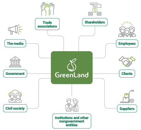 Trade associations recognize Grupo GreenLand; they view it as a synonym for agri-industrial development and highlight the diversification of its businesses because it contributes to the operations across the board. They perceive leadership and business productivity as leverages that have a positive impact on the employees, who enjoy significant work-related and emotional benefits. They also recognize the strength of the group in the region, its high-performance standards, and they value respect and ethics